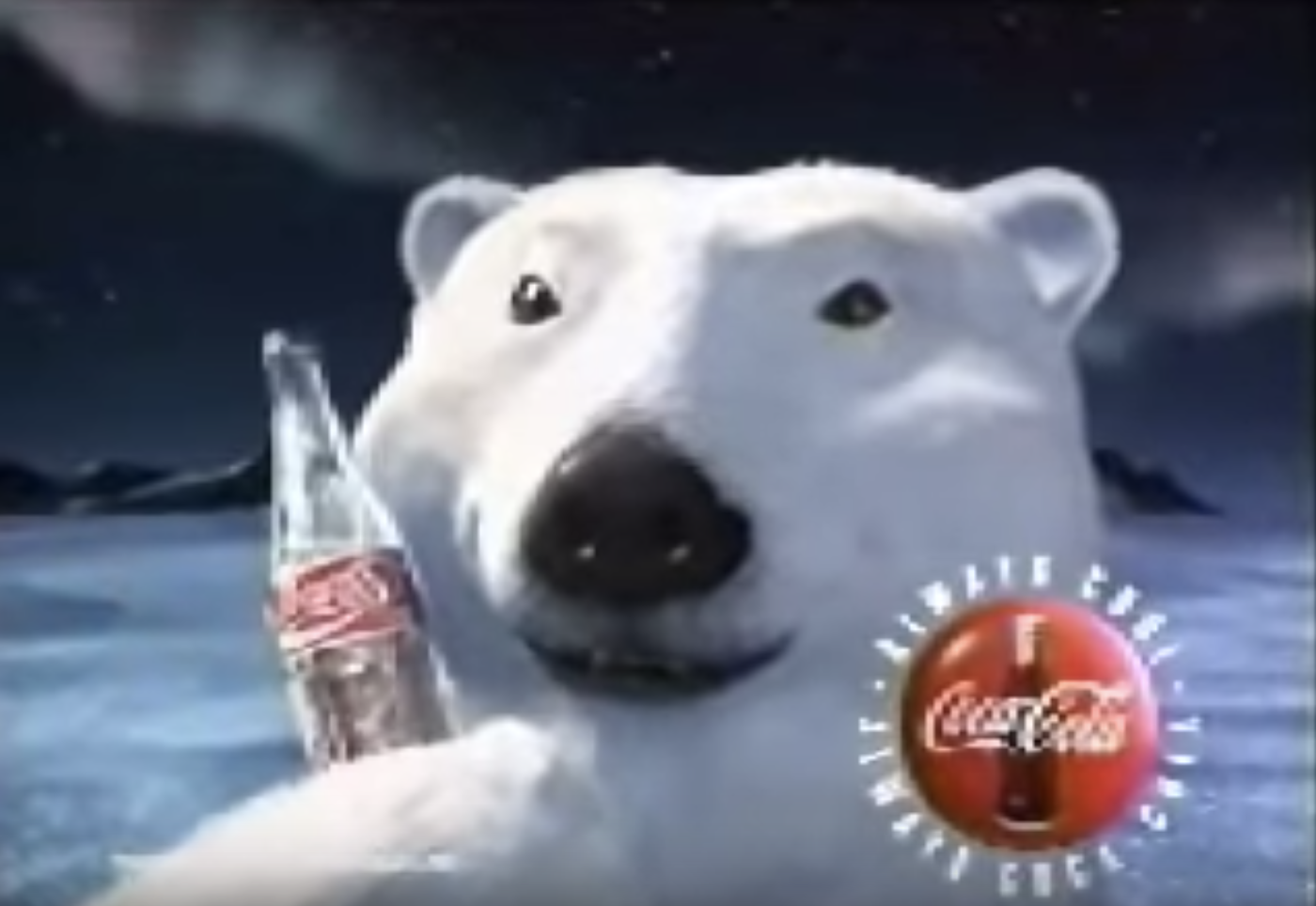 Coke has had many memorable ads throughout the years. One such ad is the first computer-generated ad it produced in 1993, utilizing a (then) new animation technique. Polar bears watch the Northern Lights and together enjoy a bottle of Coke. The simple story requires no words and very little sound. The message is clear: Coke is for everyone, everywhere (to the farthest corners of the world).