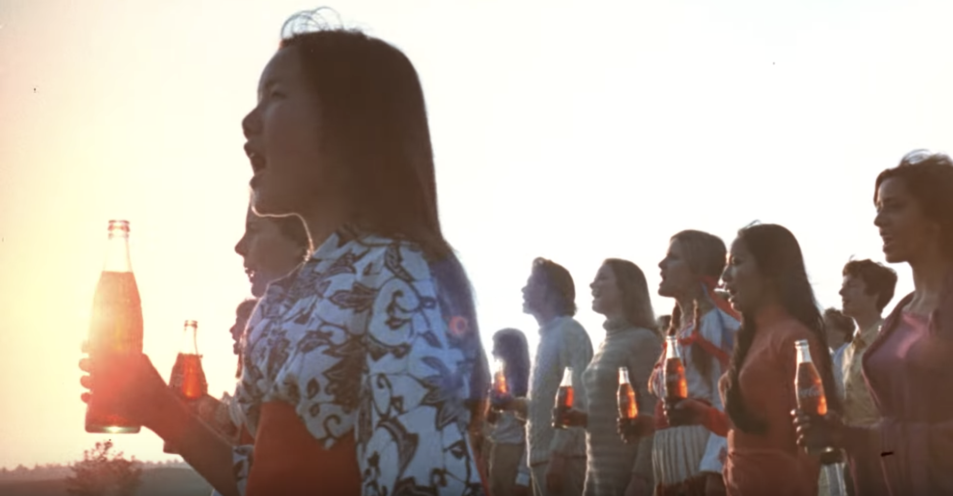 Another ad that helped define Coca-Cola was the famous “Hilltop” ad from 1971. Originally beginning as a radio jingle, the song was later featured in a commercial. In it, people representing nations across the world, stand together and sing “I’d Like to Buy the World a Coke.” At the end, the ad’s message is that Coke is the “real thing,” the thing that can help bridge gaps between different people and bring others together like not much else can. It is a hopeful message that simplifies international harmony into sharing a soft drink.