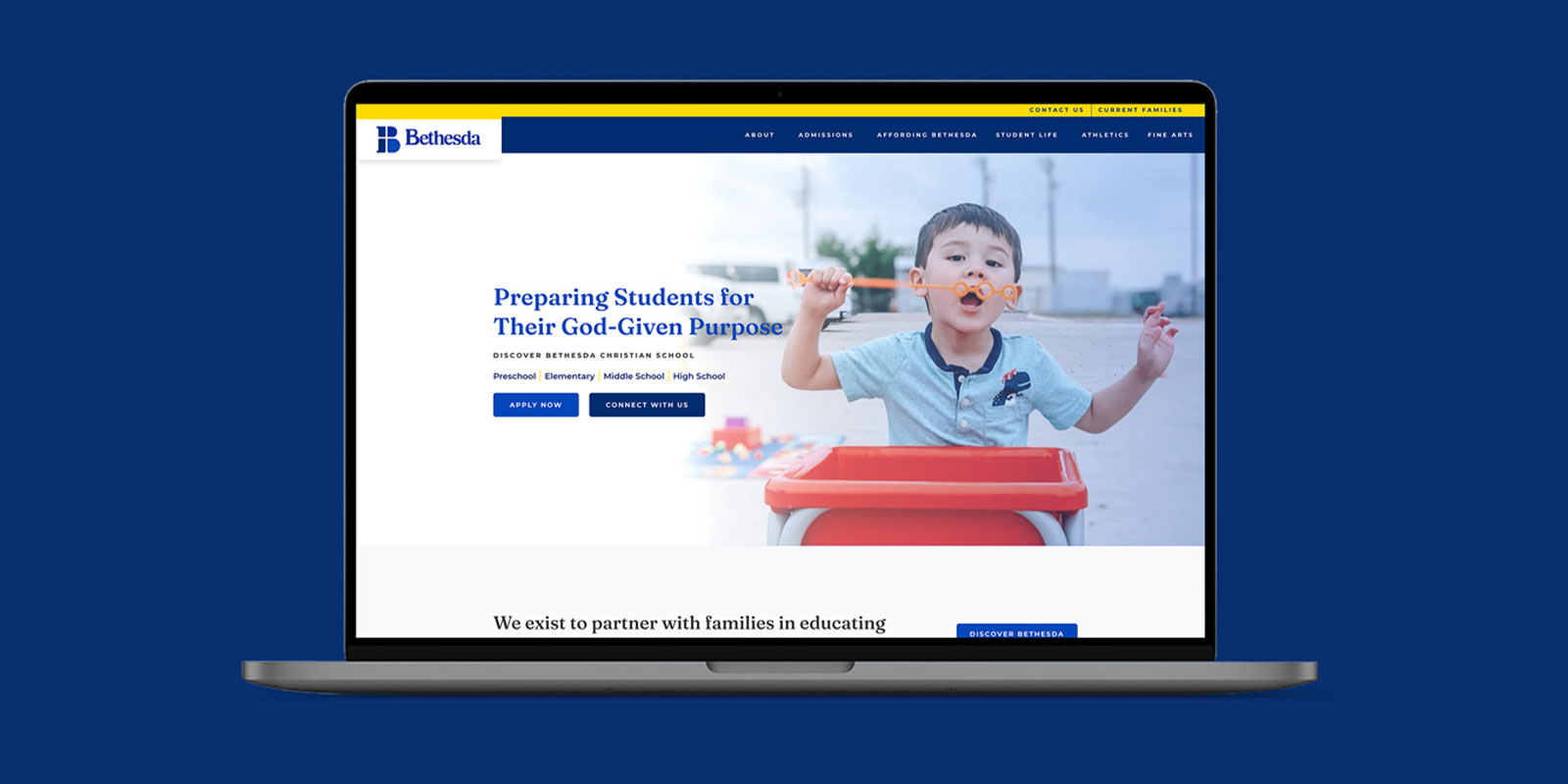 A long-term relationship allowed for us to be top of mind when Bethesda Christian School was ready to refresh their brand and produce other marketing campaign materials for its upcoming capital campaign. Overall assets produced included a modernized logo design, a mascot creation, a redesigned website with content strategy, and capital campaign print collateral.