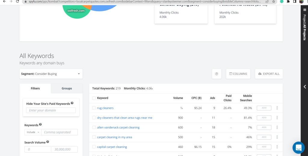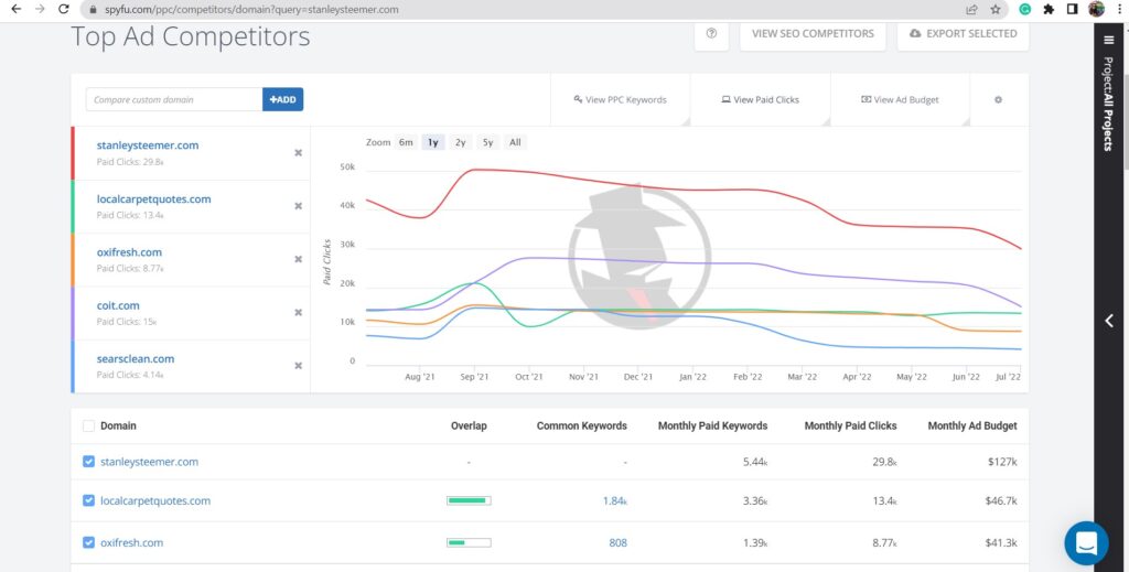 Spyfu comes with a whole suite of tools designed for the express purpose of digging up dirt on your competitors’ PPC strategies, revealing everything from their monthly ad spend to their top performing keywords.